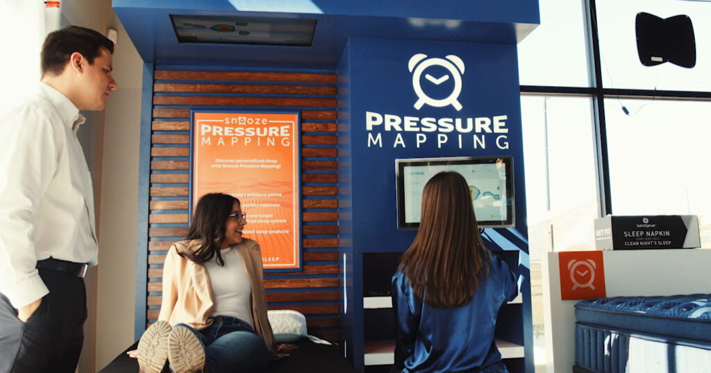 At Snooze Mattress in Madison, we do things differently. Using our proprietary Pressure Mapping technology, we take the guesswork out of mattress shopping. In just minutes, our system analyzes your body’s pressure points to recommend the perfect mattress for your comfort and support needs. Whether you’re looking for firm support, plush comfort, or something in between, we help you find a bed that’s truly tailored to the way you sleep.